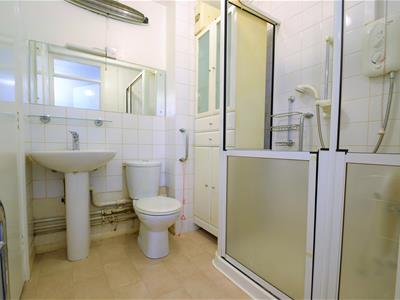 1.98m max x 1.88m (6'6 max x 6'2)Newly installed neutral colour tile effect cushioned vinyl flooring, pedestal wash basin, WC, walk-in shower enclosure, part white tiled walls with remained white emulsion, ceiling light fitting, extractor fan, airing cupboard, chrome electric heated towel rail.