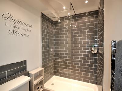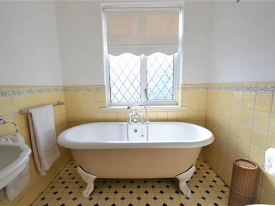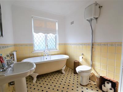 2.84m max x 2.08m (9'04" max x 6'10")Solid wood panelled door, uPVC double glazed opaque leaded lattice window to front. Victorian style white suite comprising pedestal wash hand basin with crosshead taps, low-level WC with high-level cistern, roll top bath with claw feet and chrome mixer tap and handheld shower handset. Half tiled walls, double radiator, airbrick, coving, Artex ceiling, ceiling light fitting, linoleum flooring.