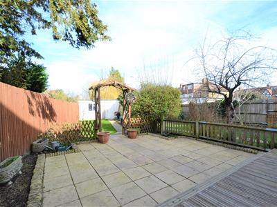 Outside is a well-maintained garden extending to approximately 60' with a decked terrace for entertaining and a lawn with flower and shrub borders. A double garage at the end can easily double as a workshop.