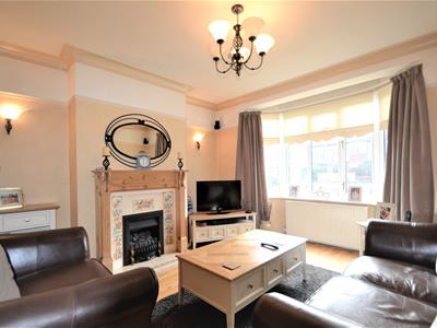 4.27m into bay x 3.38m into recesses (14' into baySolid wood panelled door, uPVC double glazed leaded lattice window to front bay, two radiators, cast iron fireplace surround, picture rail, coving, two wall light fittings, ceiling light fitting, stripped wooden floorboards.