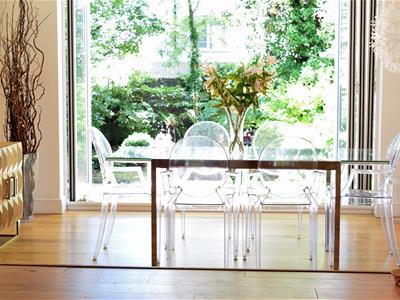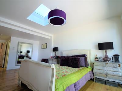 This really is the apartment for socialising! With a straight through view from kitchen to garden, there is a large kitchen/diner with solid wood flooring, solid wood kitchen suite and solid stone counter tops. At the end of the kitchen/diner are steps down to the stunning living room with a central sky-light and bi-folding doors that bring the garden into the apartment. A huge master bedroom suite with further French doors leading out to the large patio and garden and with a beautiful ensuite shower room, a large double second bedroom to the front and a beautiful family bathroom suite with Victorian roll-top bath and attractive brickwork style black and white wall tiles.