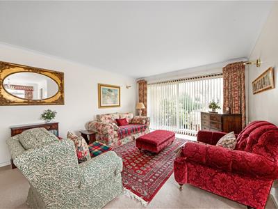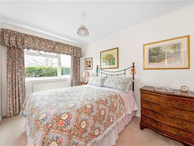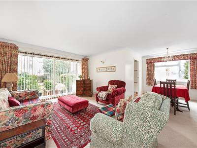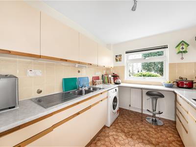 The flat benefits from a desirable south-facing private terrace, entry phone, excellent storage including built-in wardrobes, double glazing, gas-fired central heating, and garage en-bloc with visitors parking. Pristine, landscaped communal gardens add to the attractiveness of Waylands Mead.