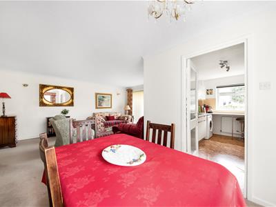 Dining Area: uPVC double glazed west-facing window to side, radiator, Artex ceiling, coving, ceiling light fitting, fitted carpet, GWPP glazed door to:-