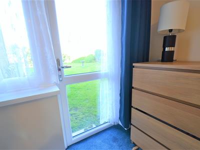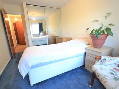 uPVC window to rear with uPVC glazed door to communal garden, built-in wardrobe with sliding mirrored doors, wall mounted electric heater, ceiling light fitting, fitted carpet.