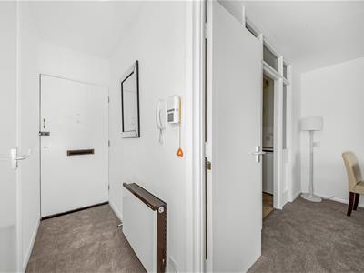 Wooden front door, storage cupboard housing electric meter and fuseboard, entryphone, emergency alarm control panel, wall mounted electric storage heater, textured papered walls, Artex ceiling, fitted carpet, ceiling light fitting.
