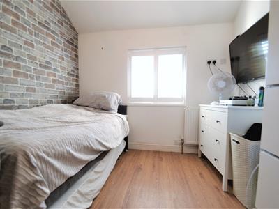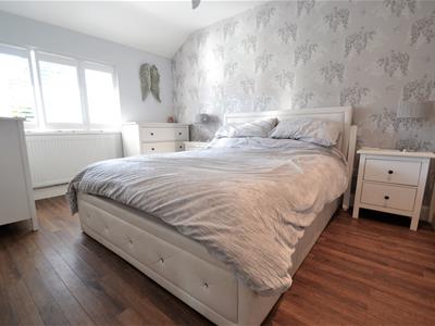 2.92m max x 2.62m max (9'7 max x 8'7 max)Solid wood panelled door, wood effect flooring, white emulsion walls with feature wall papered wall, built in storage cupboard, double glazed window with shutter, coving, radiator, ceiling light fitting.