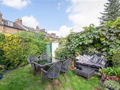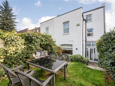To the rear is an attractive and secluded west facing garden measuring approximately 7.5m from the rear of the house, and sitting approximately 6m wide, with a paved area from conservatory/kitchen, leading to a rising staircase to the upper lawned area, which is presented with attractive mature planting beds and mature shrubs, hedging and small trees to the boundaries.