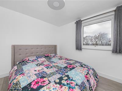 White painted wooden door, uPVC double-glazed window to rear, built-in wardrobe, Dimplex 'Quantum' wall mounted electric heater, ceiling light fitting, grey limed oak style laminate flooring.