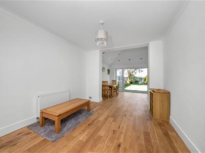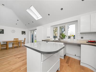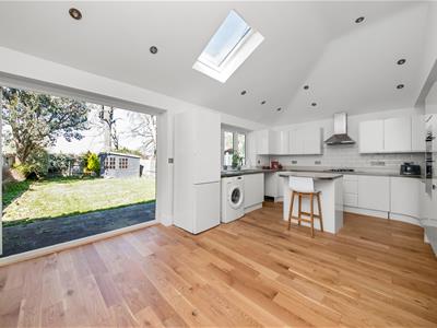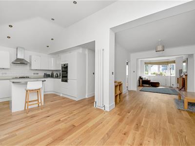 Internally the property comprises enclosed entrance porch, spacious hallway, a fully open plan living area from living area at front, to the large open plan full width rear extension, where the spacious gloss white kitchen suite with central island and bi-folding doors to garden can be found, a ground floor fully tiled bathroom suite and bedroom 4/study. To the first floor are three generous bedrooms, all recently decorated and with new carpets, and a separate WC room with sloping ceiling.