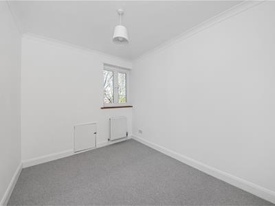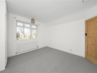 Solid wood panelled door, new grey carpet, white emulsion painted walls, built in wardrobe/cupboard, UPVC double glazed window, radiator, ceiling light fitting, loft access hatch.
