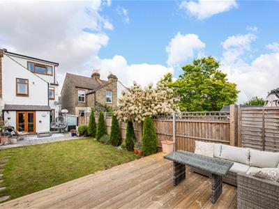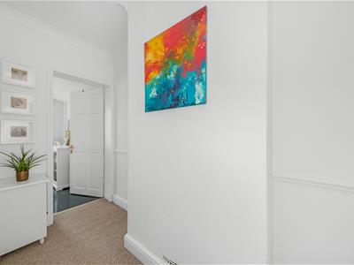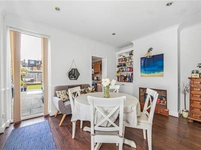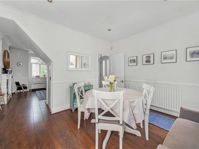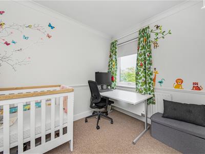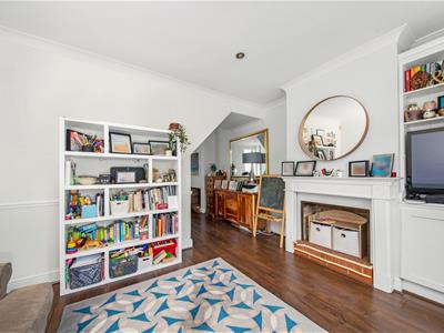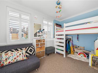 Highlights of the house include an abundance of natural light, open-plan living and dining room, both rooms with fireplaces, generous storage including attractive built-in wardrobes in the main bedroom, a built-in wardrobe in the second bedroom, and extensive second-floor eaves cupboard the full width of the house. The master bedroom at the top of the house features a delightful contemporary en-suite bathroom. The front windows of the house have the added benefit of bespoke plantation shutters and the reception rooms feature luxury laminate flooring.