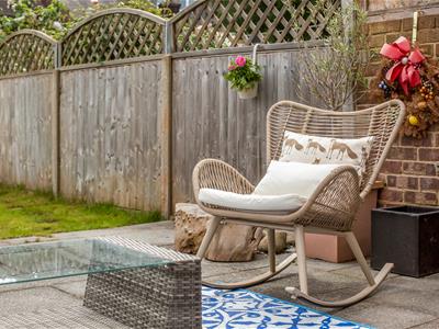 At the front of the house is a handsome paved garden with a low-level wall and wrought iron gate, to the rear of the house, a lovingly maintained, low-maintenance south-facing garden with thoughtfully designed entertaining areas to take advantage of the sun at all times of the day and a useful garden shed.