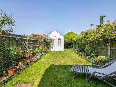 To the front is a driveway for one car, and to the rear is an attractive, low-maintenance garden with a large brick-built outbuilding and storage shed, with the potential to convert to a home office (subject to local authority approval if necessary), a well-maintained lawn with shrub and flower borders and patio area.