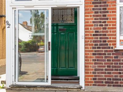 White uPVC double-glazed sliding porch door, tiled floor.