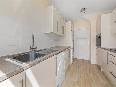Wooden painted panelled door, uPVC double glazed door to rear with side and top lights, high gloss cream wall and base units with granite effect laminate worktops incorporating stainless steel sink and drainer with mixer tap, space for fridge freezer, space and plumbing for washing machine, space and plumbing for dishwasher, space for tumble dryer, Bosch electric oven, Belling 4 ring electric hob with Zanussi extractor hood, tiled splashbacks, Baxi combination boiler, limestone effect tiled floor, ceiling light fitting.
