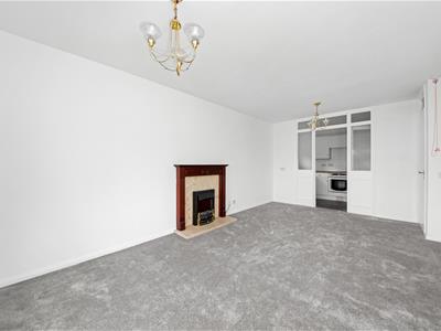 White painted wooden door, uPVC double glazed window to front, fireplace with decorative wooden surround, marble inset and hearth, Dimplex electric storage heater, emergency alarm pull cord, two ceiling light fittings, textured ceiling, fitted carpet, opening to:-