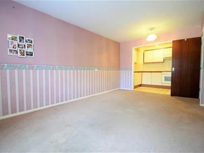 2.97m x 1.93m (9'9 x 6'4)Open to living room, tile effect vinyl flooring, neutral colour kitchen cabinets, electric oven and hob, white sink and drainer unit with mixer tap, ceiling light fitting, extractor fan.