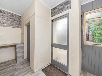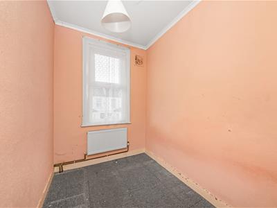 White panelled door, uPVC double glazed window to rear, double radiator, Vaillant combination boiler, fitted carpet, ceiling light fitting.