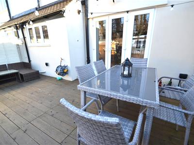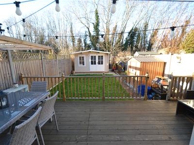 Accessed via dining room via double doors, opening onto a spacious decked patio with balustraded boundary and gate providing access to the garden, which is laid mainly to lawn with fenced boundaries and a planting area. There is also a rear gate which is accessed via a communal alley way to the rear, providing additional garden access.