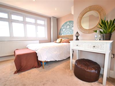 Neutral carpet, emulsion painted walls, radiator, spot lights, large range of built in wardrobes, wall mounted air conditioning unit, UPVC double glazed windows to front and rear, with the front being leaded.