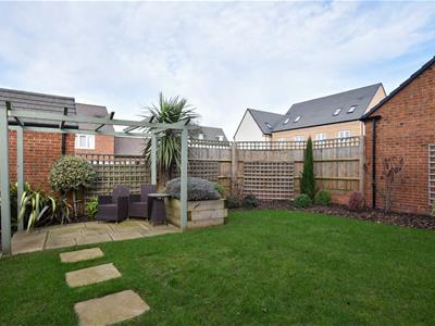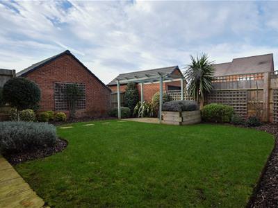 To the front there is a shared driveway offering access to one other property and the off road parking for 3 cars. The garden has been nicely landscaped with an array of shrubs and patio area with pergola.