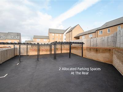 To the rear is an enclosed garden which is laid to lawn with a patio area and gated rear access which leads to the 2 allocated parking spaces.