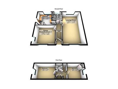 The property has recently been renovated with brand new flooring throughout, new electric storage heaters, updated kitchen & shower room. On the ground floor there is a kitchen, shower room, lounge measuring over 23ft in length and a separate dining room which could be used a 3rd bedroom. On the first floor there are 2 bedrooms and a WC.