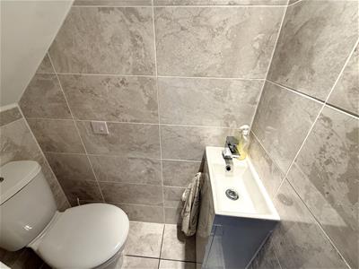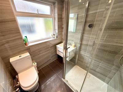 1.82m x 1.78m (5'11" x 5'10")Towel radiator, upvc window to side aspect, wc, sink and shower.