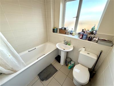 2.14 x 2.02 (7'0" x 6'7")Bath with shower over, low level wc, wash hand basin, towel radiator, upvc window to front aspect.