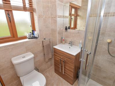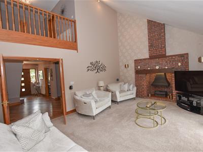 The first thing to note in the lounge is the vaulted ceiling with gallery landing above, making this a unique space with a pleasant aspect over the rear garden with French doors and feature Inglenook fireplace with brick surround.