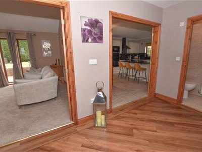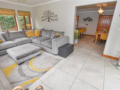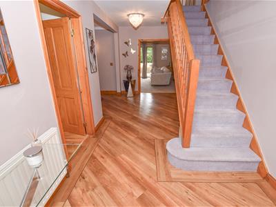 A spacious reception hall with the home office on the immediate left, cloaks and stairs on the right. You will find the open dining area on the left hand side, ideal for entertaining with connecting double doors into the lounge and breakfast kitchen, not forgetting the ground floor WC and integral access into garage.