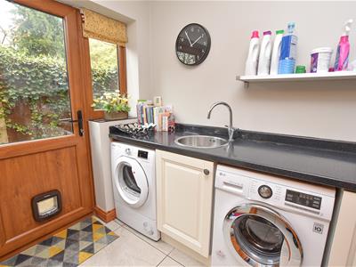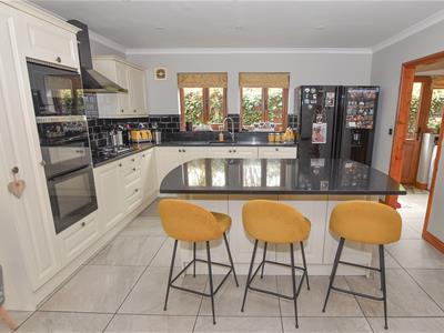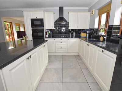 The kitchen itself offers a wide range of wall and base units incorporating cupboards and drawers with contrasting granite worktop with inset sink, built in appliances including waste disposal, dishwasher, oven, hob and microwave with space for fridge freezer and central island providing additional storage. You will also find the utility with matching base units and worktop with space for washing machine and dryer, access to the side.
