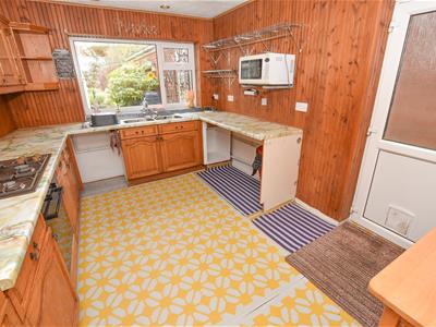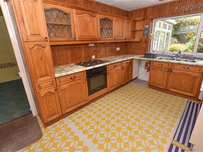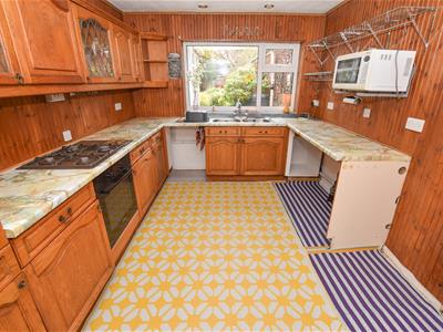 The well proportioned kitchen offers a wide range of Pine wall and base units with space for appliances, door to side and aspect over the rear garden. Connecting door back into the hallway.