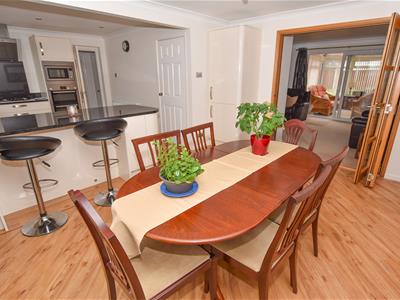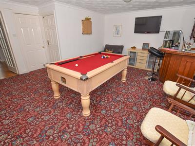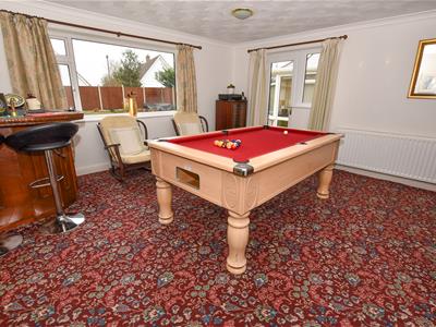 Starting with the extension ahead, a large room which has served the current owners well as a family / entertaining room with door leading onto the garden, access to the integral garage built in storage. The main living space offers well proportioned accommodation with aspect over the garden and sliding door connects into the conservatory which has French doors leading out. The living room offers flexibility with bi-folding doors linking into the dining kitchen.