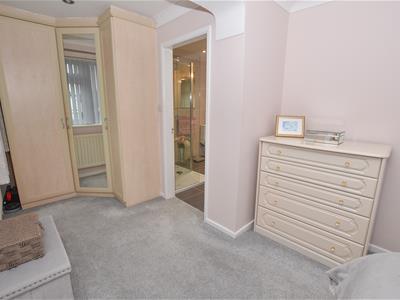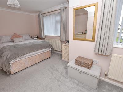 The master suite benefits from being extended to the side and presents a spacious bedroom with dressing area offering built in wardrobes and door connecting into the spacious en-suite with its contemporary suite which includes a large walk-in shower, wash basin with vanity and WC.