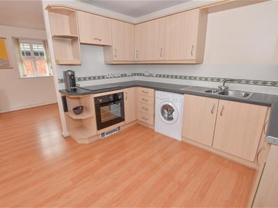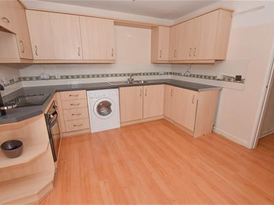 The kitchen is open to the living area and offers a range of fitted wall and base units incorporating cupboards, drawers and shelving, space for fridge/ freezer, built in oven/ hob, plumbing for washing machine and inset dishwasher, inset sink with contrasting worktop and tiled splash back.
