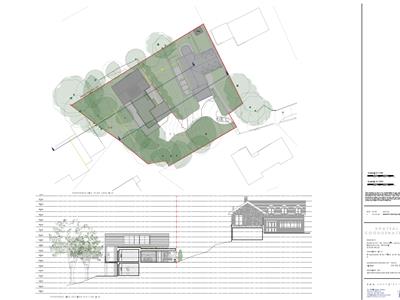Our first image shows the existing property and proposed new build set within substantial gardens below 'Foxearth'