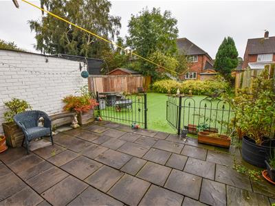 To the rear you will find a good size garden with patio area off the reception space and linking to the passageway, wrought iron divide with gate leading to the lawn area (Astroturf) with fence and shrub boundaries.