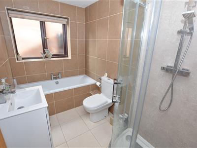 The family bathroom offers a 4 piece suite which includes a bath, wash basin, WC and separate shower.