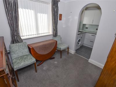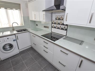 This is where this property has been re-configured to create a 2nd reception room (dining room) positioned off the kitchen. Formerly the 2nd bedroom with aspect towards the front and arch opening leading into the kitchen which offers a range of contemporary wall and base units finished in white with complimentary worktops and space for appliances with aspect to the side.