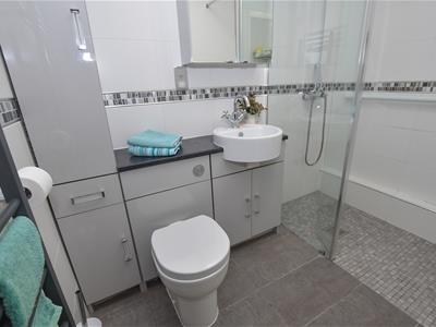 Starting on the right hand side you have the contemporary shower room which offers a walk in shower and screen, wash basin and WC with fitted furniture.