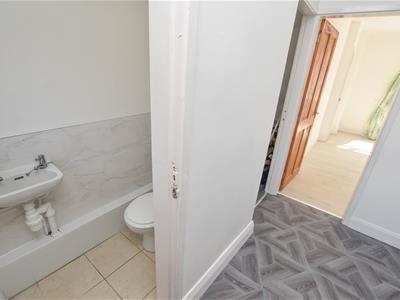 Bright and spacious with aspect and door to the rear. The kitchen is new and offers a range of fitted wall and base units with contrasting work top and space for free standing appliances, inset oven, hob and sink. Walk in cupbaord under the stairs provides further storage and houses the electric meters. Finally off the kitchen you have the all important downstairs WC.