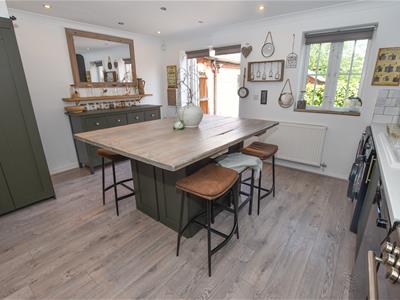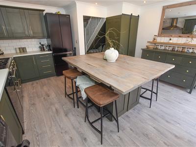 The well proportioned breakfast kitchen has been remodelled with a contemporary dark green fitted kitchen which incorporates a wide range of wall and base units with space for appliances, central island and aspect over the garden with French doors. There is also a concealed gas combi boiler.