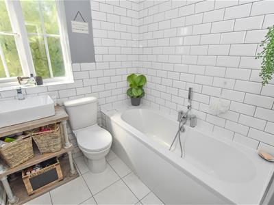 The top floor presents 3 further bedrooms, two of which are doubles both offering built-in wardrobes and one single. Not forgetting the modern family bathroom which incorporates bath with shower above, WC and sink with complimenting part tiled walls.