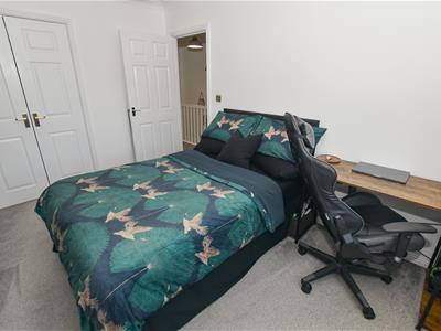 You will also find the master bedroom suite with a double bedroom, built in wardrobes and a modern en-suite shower room. Whilst the staircase continues to the second-floor.