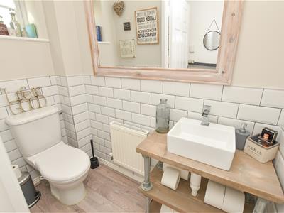 The all important downstairs WC is on the left with reception on the right and breakfast kitchen ahead. The current owner has also made use of the understairs to provide handy storage.