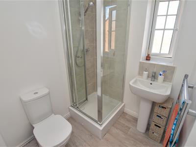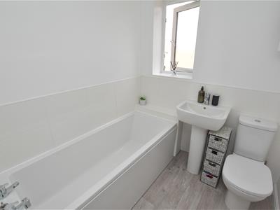 3 bedrooms in total with the master benefitting from built in cupboard and contemporary en-suite shower room. The bathroom offers a 3 piece suite with WC, wash basin and bath with shower above, chrome fittings and part tiled walls.