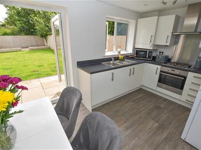 The good size garden enjoying the South Easterly aspect with patio area off the dining area whilst the majority is laid to lawn with further patio area to the rear with fence boundaries and wooded aspect to the rear.