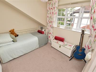 Two further double bedrooms, the 2nd is the larger of the two with built-in storage and additional space over stairs and two windows to the front.