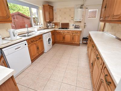 A well proportioned lounge with aspect to the front, inset gas fire and stairs to the first floor with connecting door into the extended living / dining area. Here you find a living area on the left with aspect over the garden and dining area with patio doors leading onto the garden. Whilst the breakfast kitchen can be found on the right and offers a range of wall and base units with space for appliances, wall mounted gas boiler, aspect over the garden, understairs store and door to side.